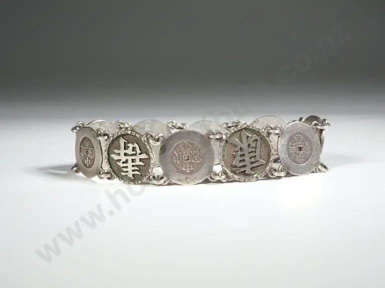 Chinese Export Sterling Silver Bracelet. Signed Woshing.