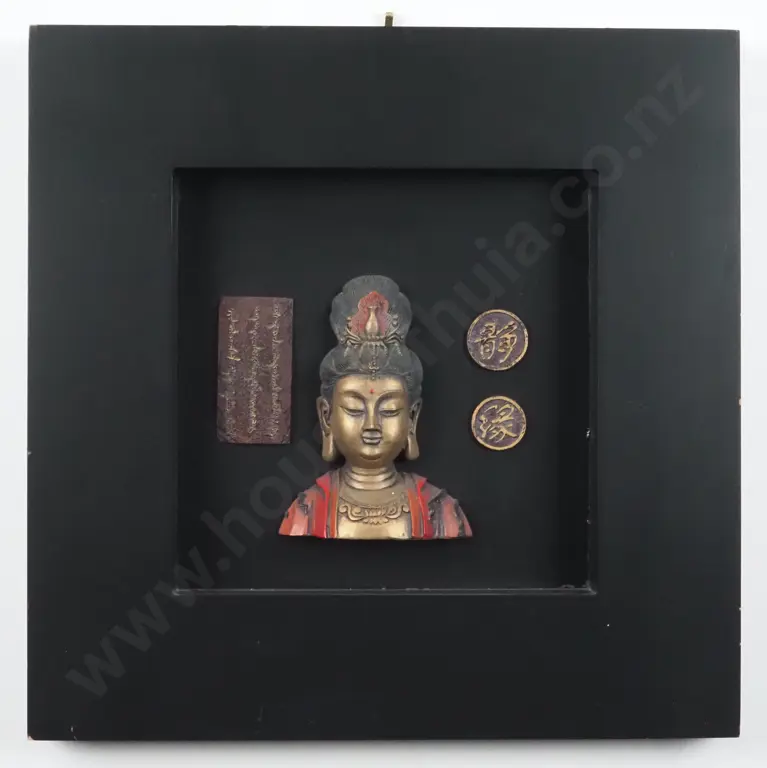 Buddhist Wall Art Possibly Depicting Guan -Yin Along With Other Symbolic Elements