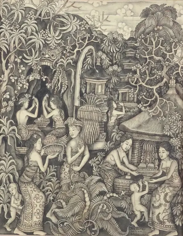M.D. Data. Batuan, Bali. Ink & Wash on Paper Pasted on Board.