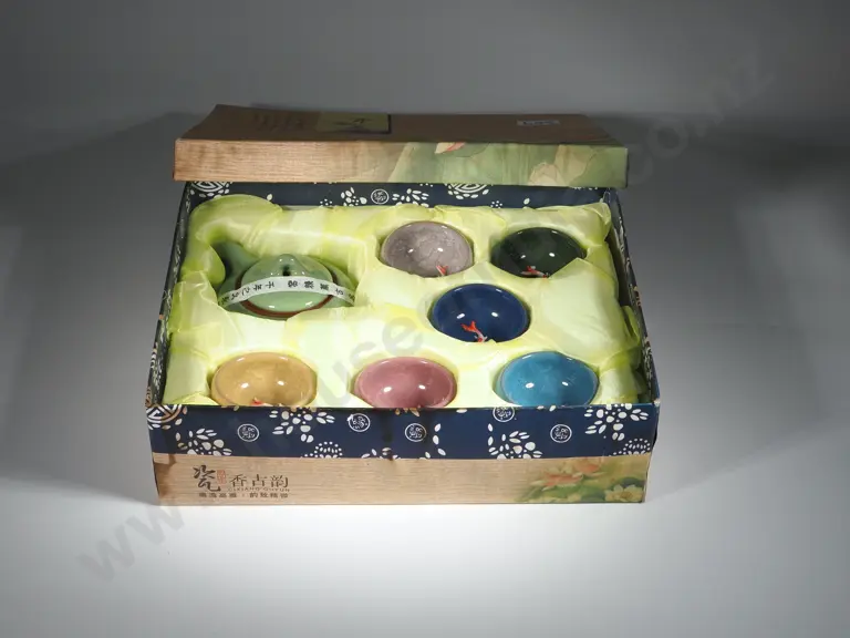 Vintage Chinese Tea Set Decorated with Koi to Base Of Bowl