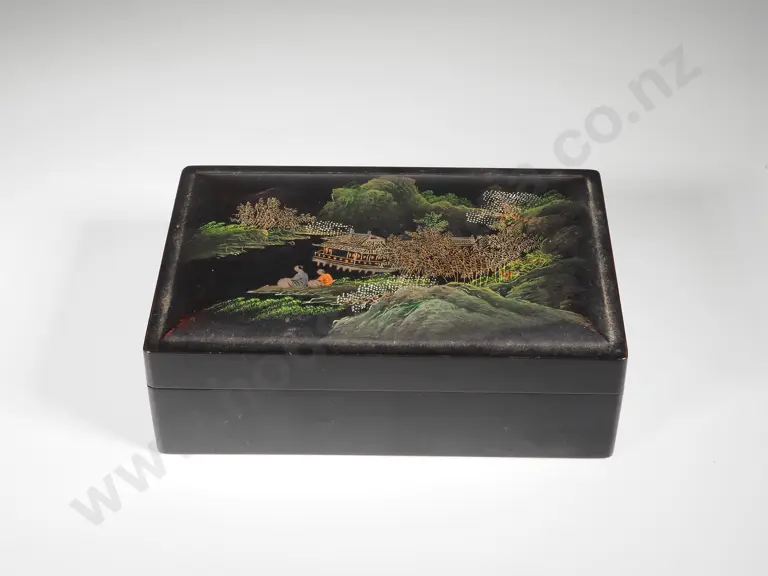 Boxed Calligraphy Set Completer with Seal, Brushes etc., Chopstick Holder & a Small Bone Box