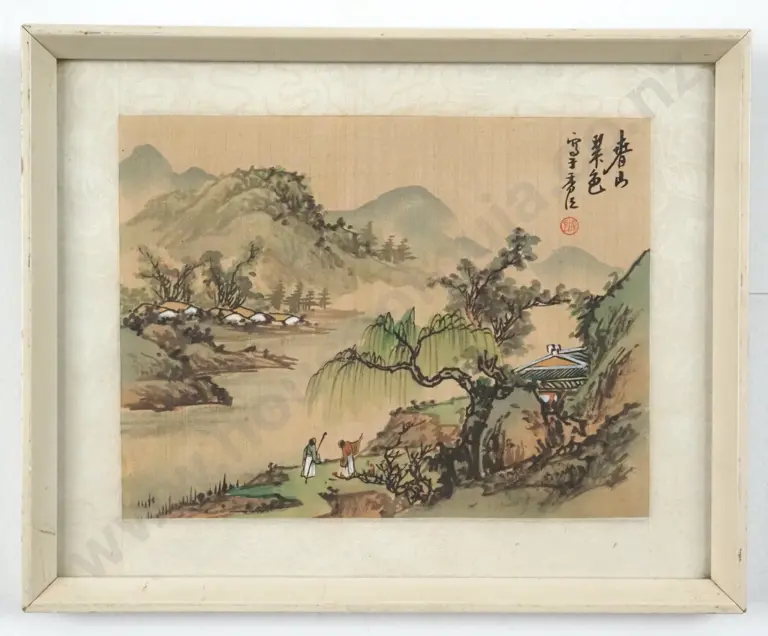 Two Gentlemen Conversing by a River. Chinese Watercolour on Silk.