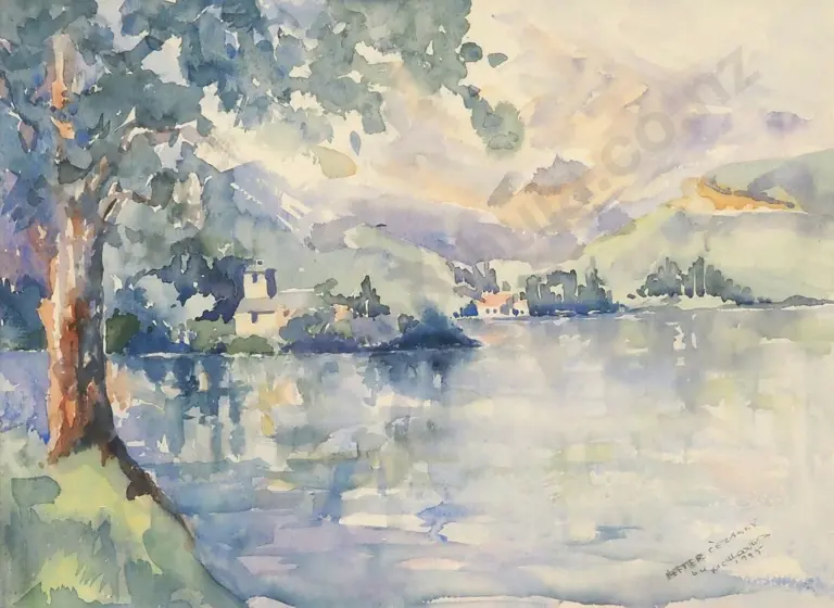 Peggy Spicer. Lake Ohau, South Island, N.Z. Watercolour.