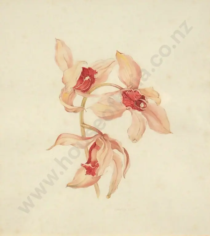 N. Hartley Tutiss. Orchid Study. Watercolour & Pencil.