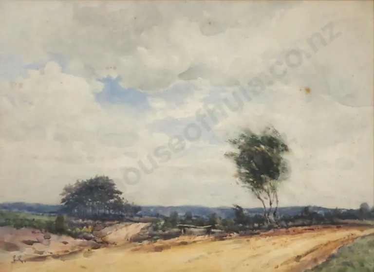 E.R. Landscape - Back Road in the Country. Watercolour.
