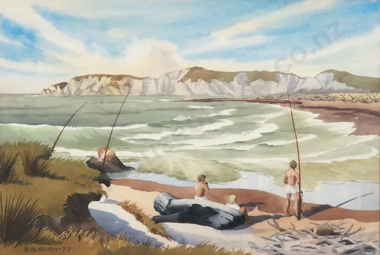 Stan Bugden.'1977. Rising Tide' Waipaoa River Mouth. Watercolour.