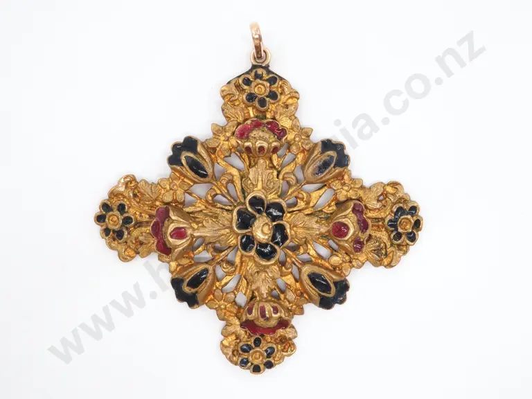 Antique French Enamelled Floral Motif Pendnat in Base Metal Estimate: $200 - $300