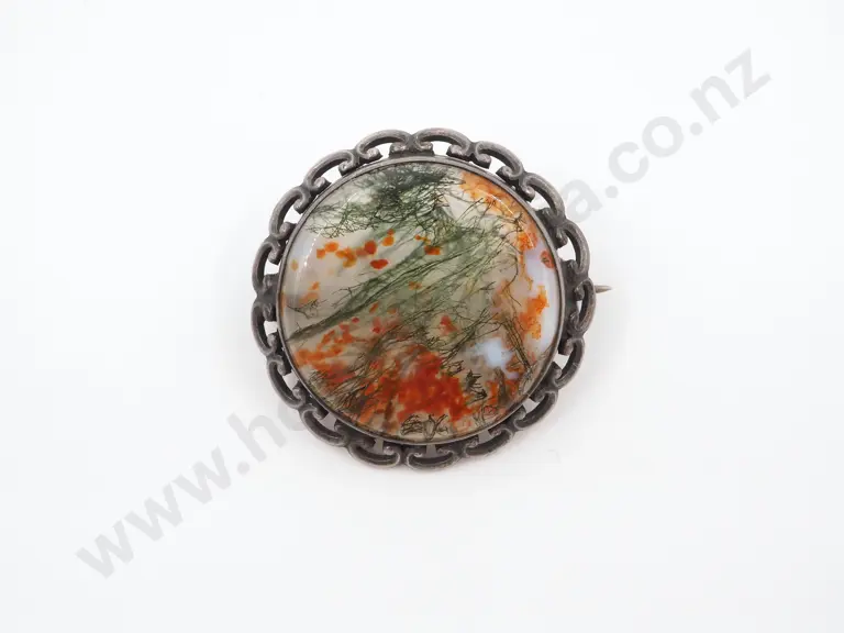 Sterling Silver & Moss Agate Brooch Estimate: $30 - $50