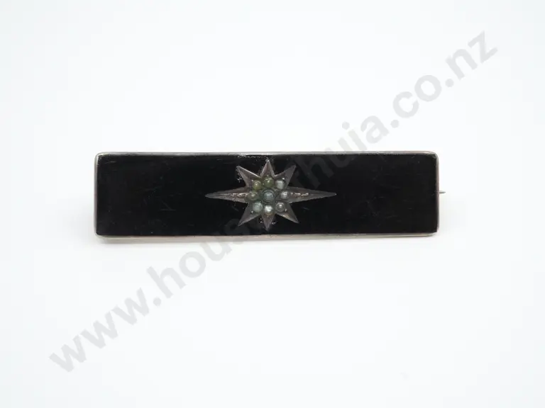 Sterling Silver & Enamel Bar Brooch Set With Seed Pearls In A Starburst. Estimate: $60 - $80