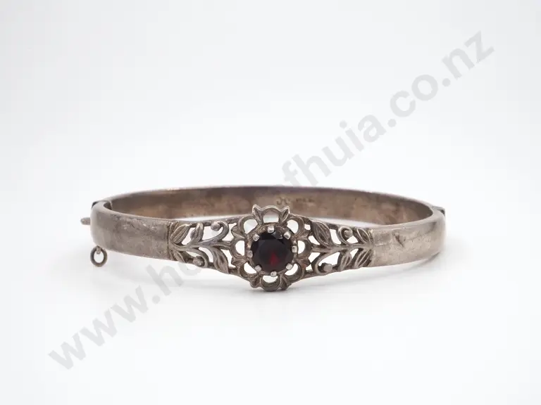 Sterling Silver Hinged Bracelet with Red Stone Estimate: $100 - $150