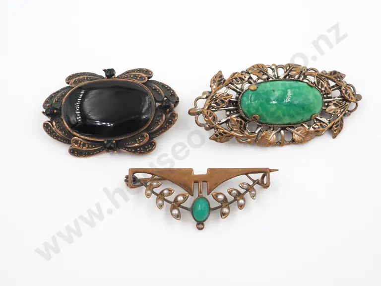 Sterling Silver Scottish Mourning Brooch w Lapis & Bloodstone A/F Estimate: $120 - $180