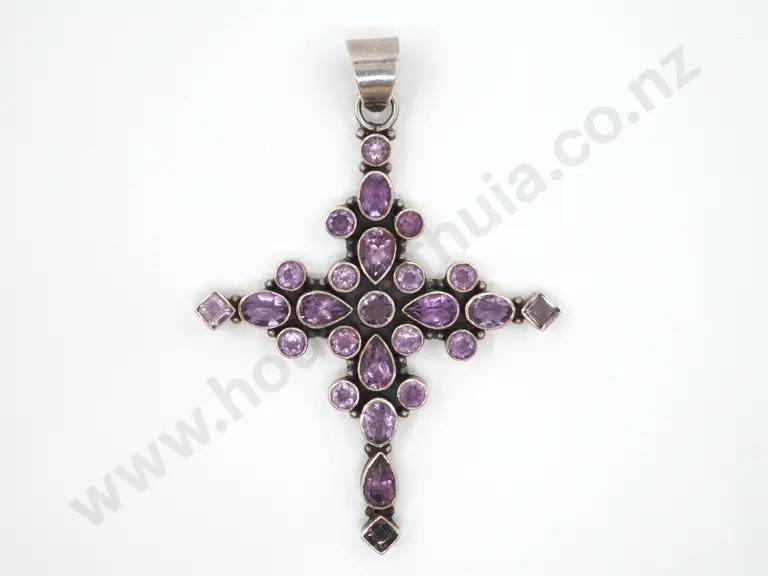 Large Sterling Silver Cross Set With Amethysts Estimate: $50 - $80