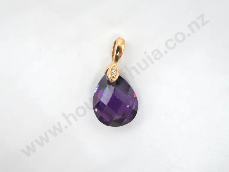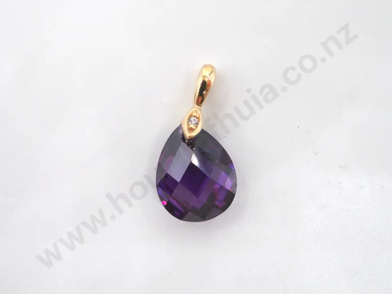 9ct Yellow Gold & Amethyst CZ Drop Pendant Estimate: $50 - $100