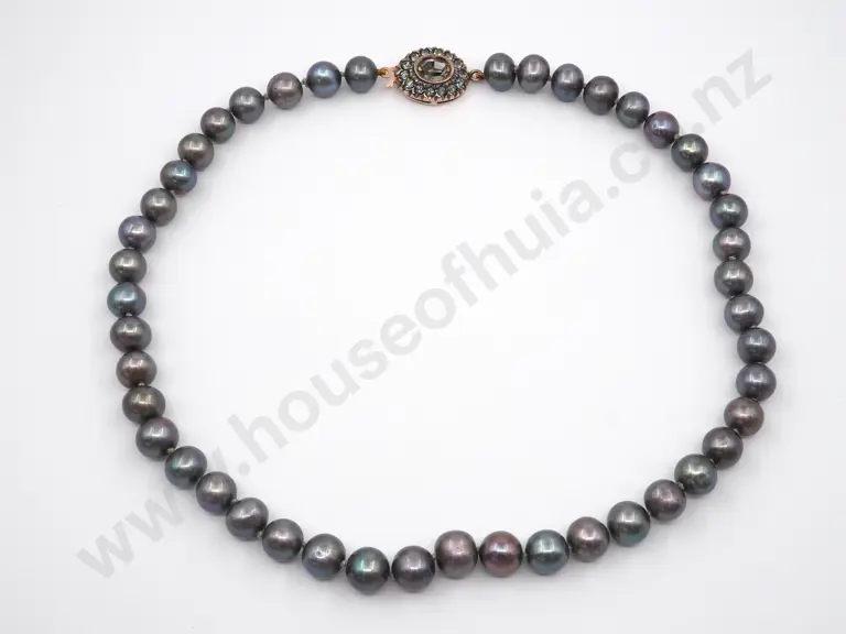 String Of Black Pearls with An Oval Decorative Stone Clasp Estimate: $50 - $80