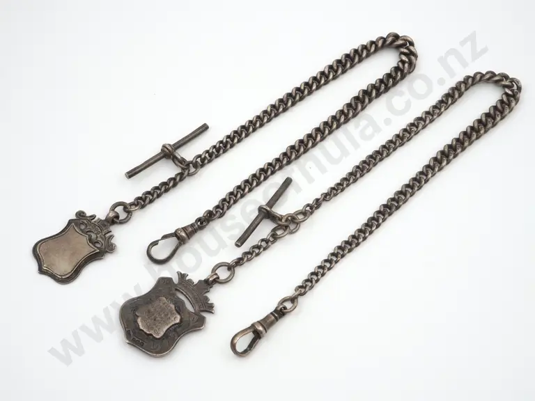 Two Sterling Silver Watch Chains Both With T Bars & Fobs. Estimate: $100 - $200