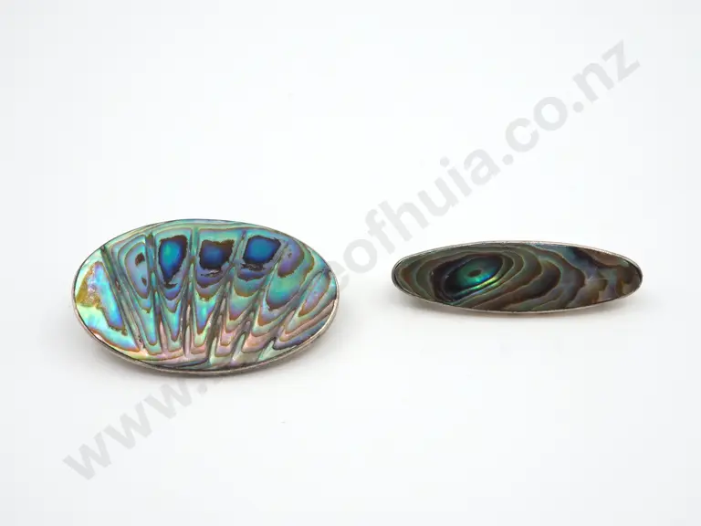 Two Oval Paua Shell & Sterling Silver Brooches Estimate: $40 - $80