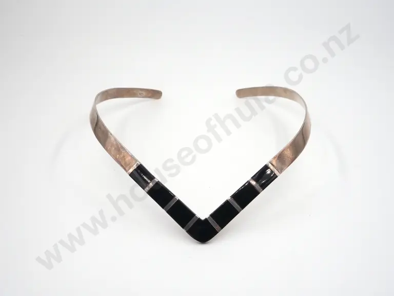 Sterling Silver & Onyx Choker Necklace Estimate: $40 - $80