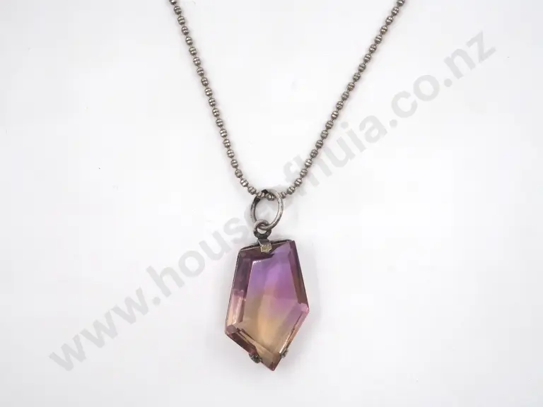 Shaped Coloured Ametrine Pendant Mounted In Silver on Sterling Silver Chain Estimate: $120 - $180
