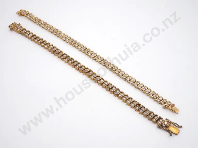 Two Silver Gilt & White Stone Fancy LInk Bracelets. Some Stones Missing Estimate: $30 - $50