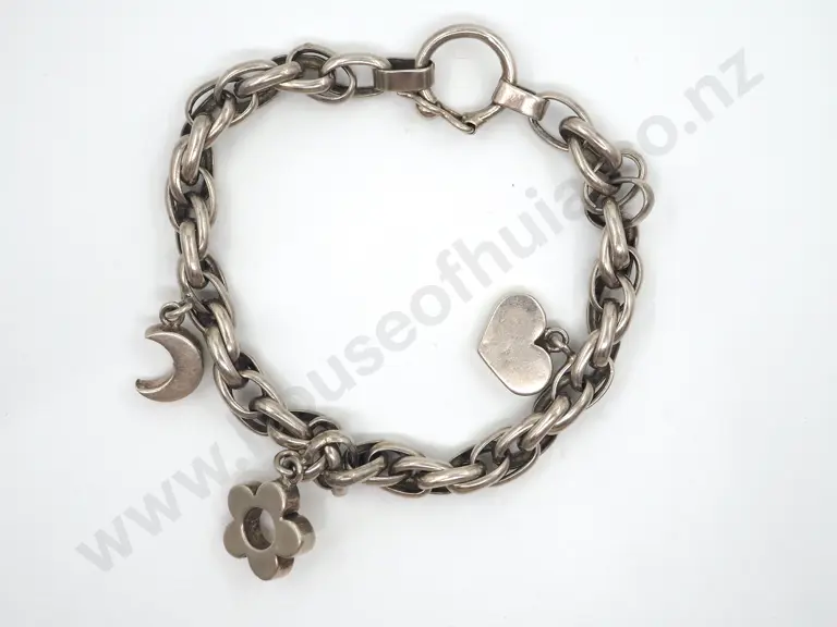 Sterling Silver Heart, Moon & Flower Bracelet Estimate: $50 - $80