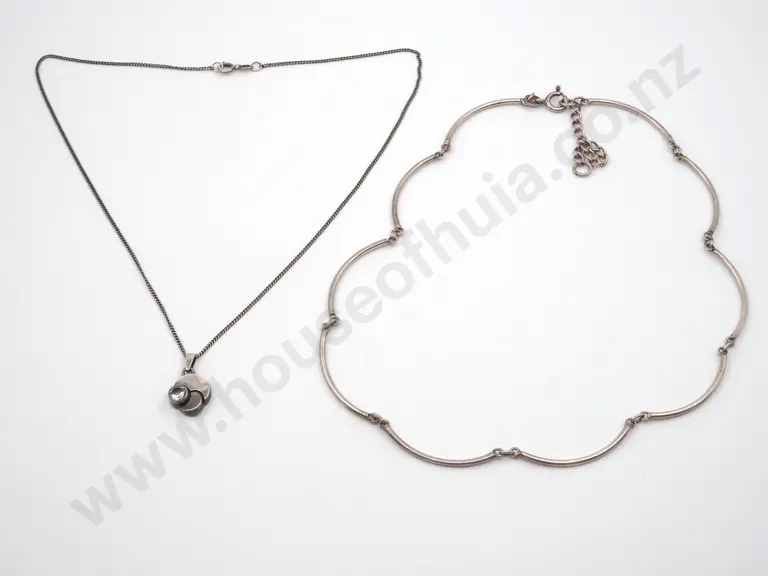 Vintage Sterling Silver Choker Pendant & A Modernist Style Sterling Pendant Inset with A White Stone Estimate: $40 - $80