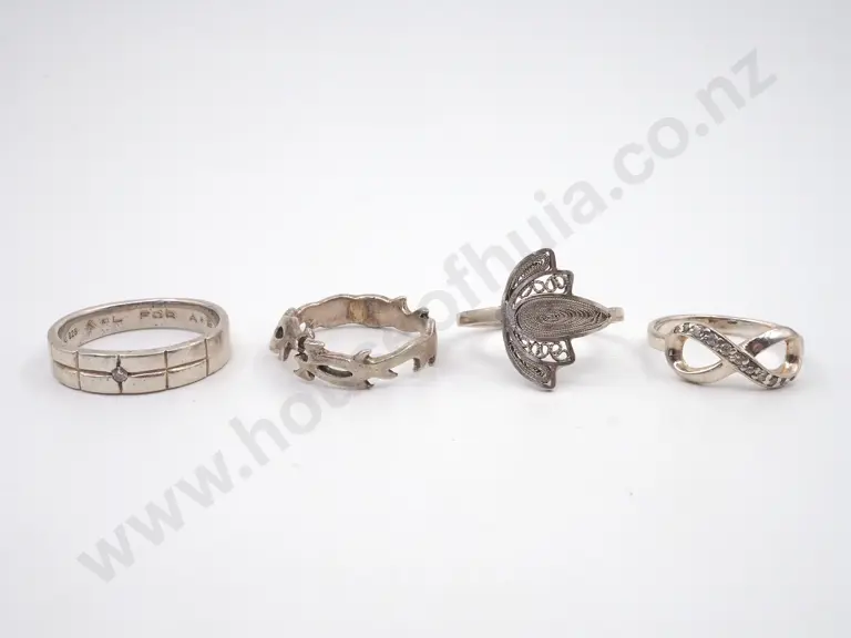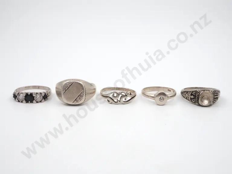 Five Sterling Silver Rings. One Bridge Set With Stones, One Gents Signet Ring, Estimate: $40 - $80