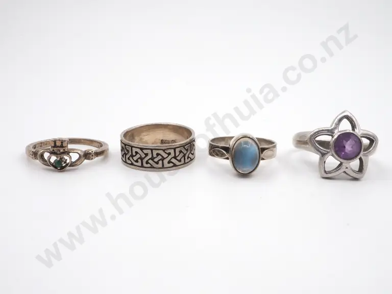 Four Sterling Silver Rings.One Set with An Oval Moonstone. Estimate: $60 - $80