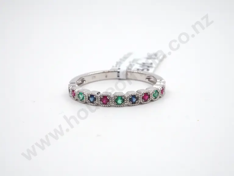 9ct White Gold Emerald, Ruby & Sapphire Stacker Ring Estimate: $200 - $300