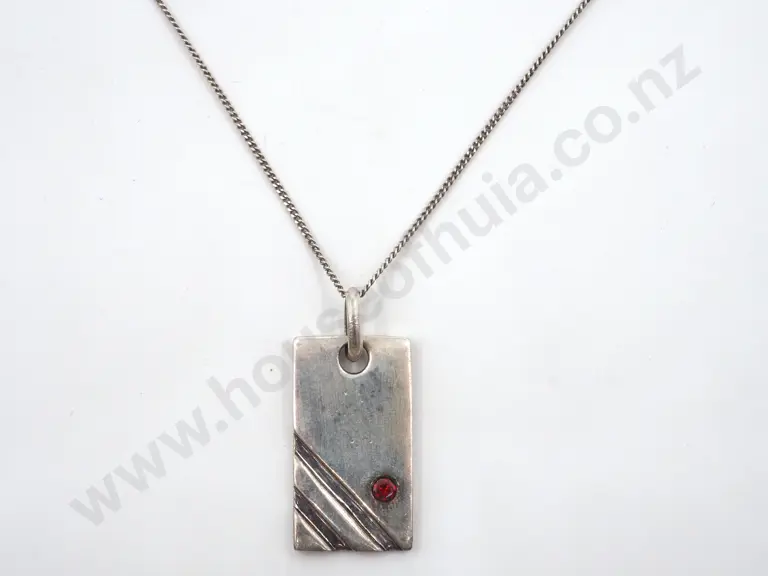 Vintage Sterling Silver Bar Inset With Red Stone On a Chain Estimate: $40 - $80