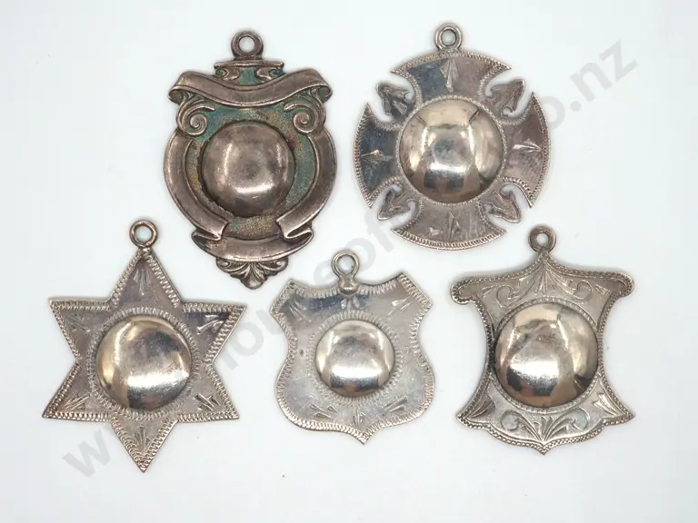 Five Sterling Silver Fobs/Medallions In Varying Shapes Estimate: $40 - $80