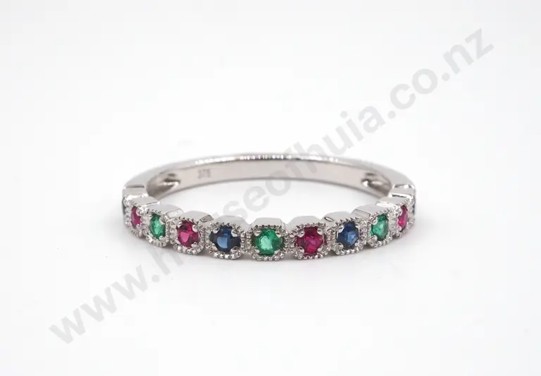 9ct White Gold Emerald, Ruby & Sapphire Stacker Ring Estimate: $200 - $300
