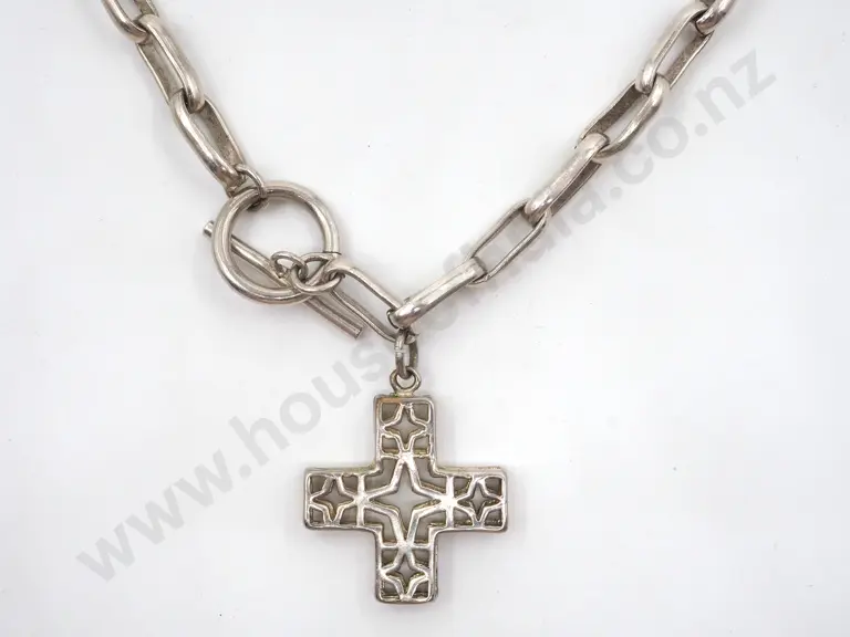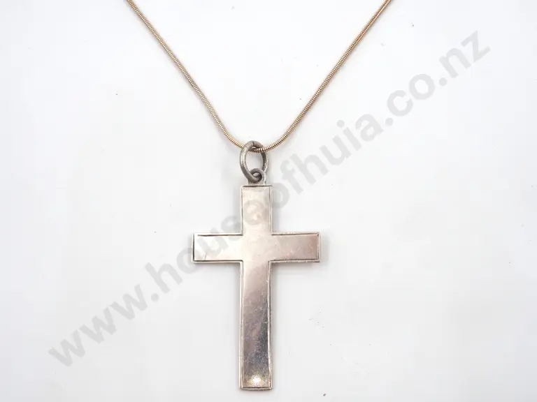 Sterling Silver Cross On Snake Chain, Estimate: $40 - $80