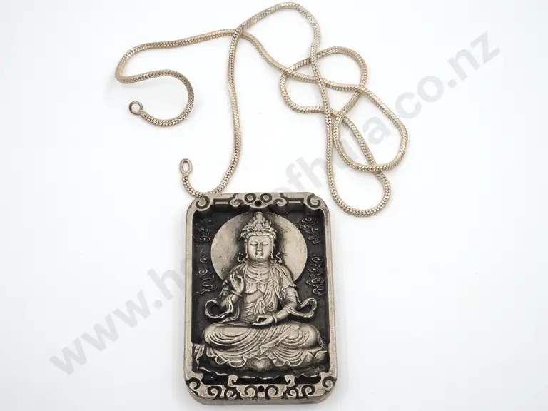 Large Rectangular Metal Amulet Pendant Depicting Kwan Yub On a Box Link Chaind Estimate: $20 - $40