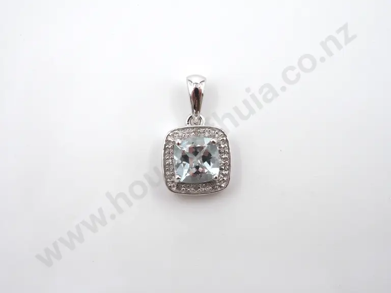 9 White Gold Aquamarine & Diamond Pendant Estimate: $100 - $200