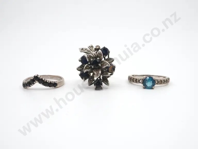 Three Sterling Silver Rings all Inset with Stones Estimate: $50 - $100