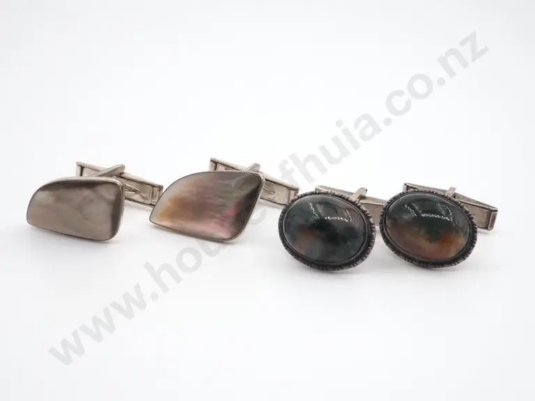 Two Pairs of Sterling Silver Cufflinks- One Agate & the other MOP Estimate: $60 - $80