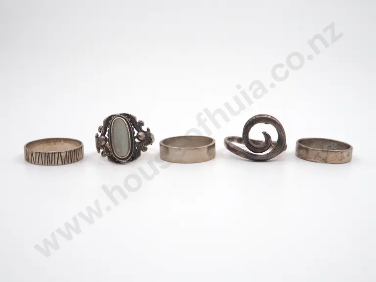 Five Sterling Silver Rings - One Inset with a Moonstone Type Stone Estimate: $50 - $80
