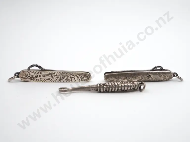 Three Sterling Silver Glove Hooks For Chatelaines. (Two Retractable ) Estimate: $40 - $80