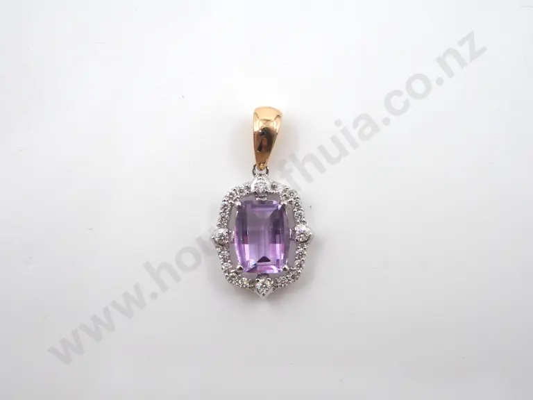 9 Yellow & White Gold Amethyst & Diamond Pendant