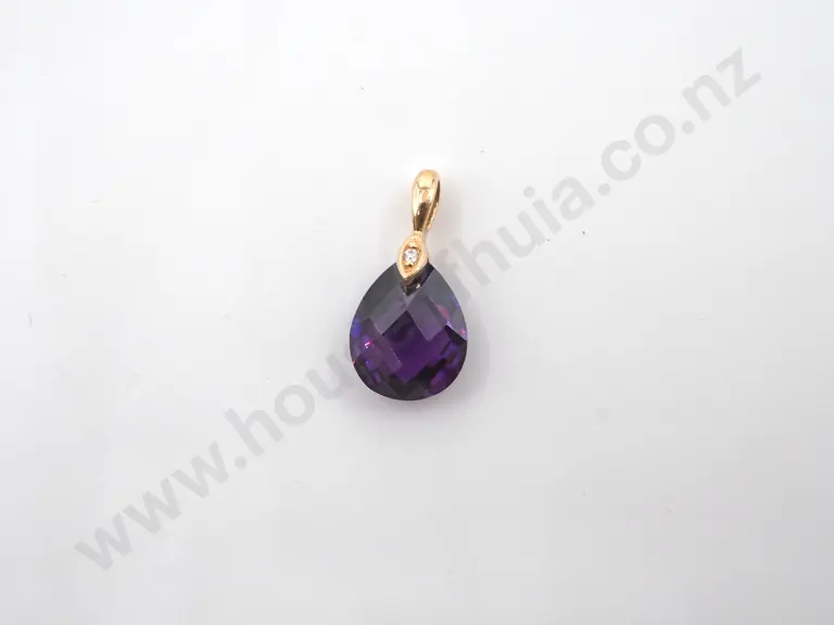 9ct Yellow Gold & Amethyst CZ Drop Pendant Estimate: $50 - $100