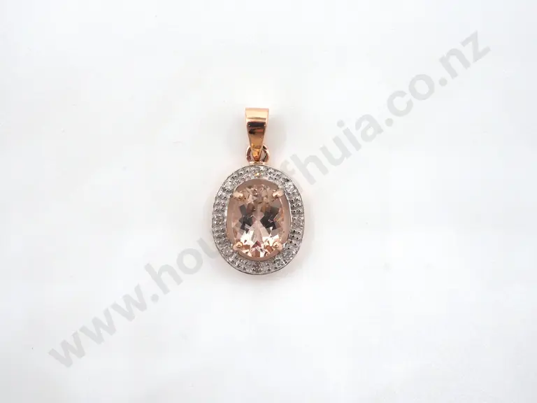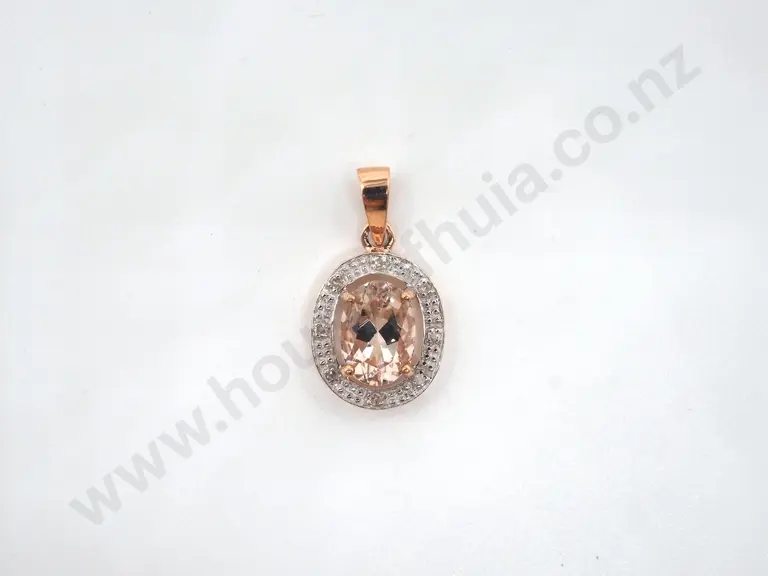 9ct Morganite & Diamond Pendant of Oval Form Estimate: $80 - $120