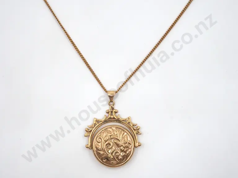 9ct Gold Embossed Swivel Pendant On Chain Estimate: $150 - $300