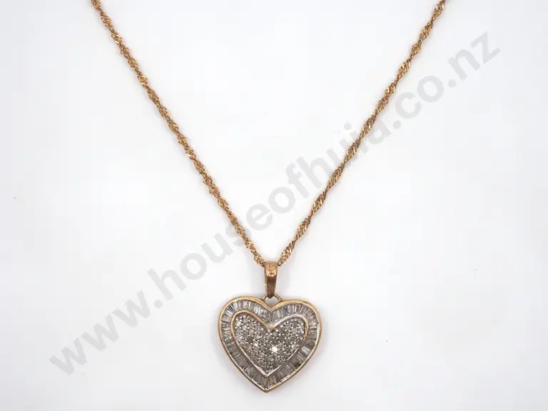 9ct Gold & Diamond Heart Pendant Estimate: $180 - $250