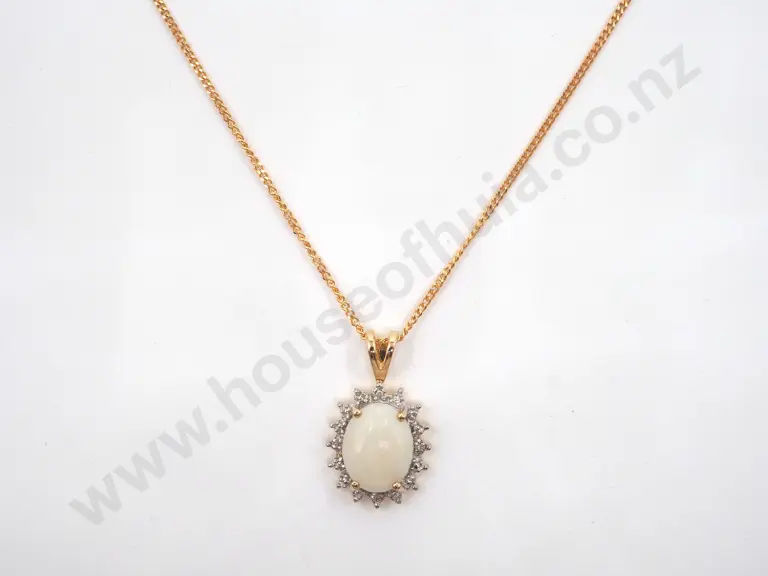 Oval Milk Opal & CZ Pendant & Chain Estimate: $100 - $200