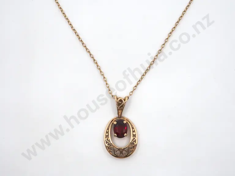9ct Gold & Garnet Pendant with Chain Estimate: $200 - $300