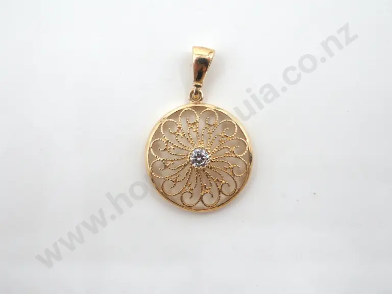 9ct Yellow Gold & CZ Swirl Filigree Pendant Estimate: $50 - $100