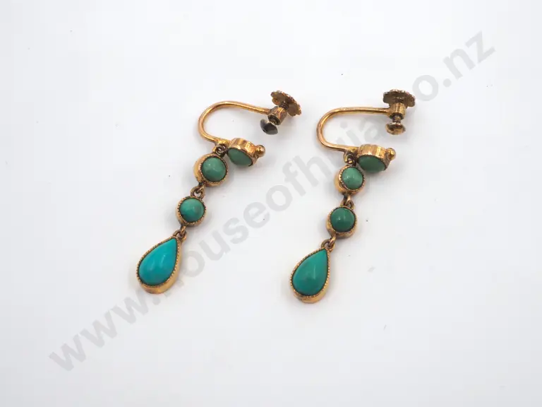 Pair of Antique Turquoise & Gold Screw Back Pendant Earrings Estimate: $200 - $300
