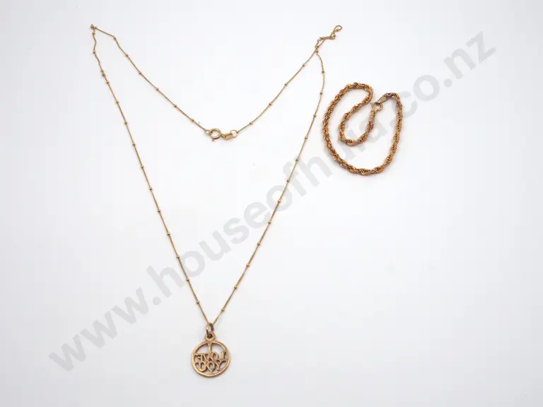 Delicate Rope Chain Bracelet & A Necklace w Fine Chain & Pendant That Reads " I Love You" Estimate: $150 - $300