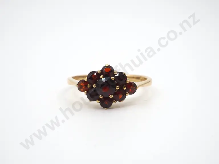 9ct Yellow Gold Diamond & Garnet Halo Ring Estimate: $200 - $400