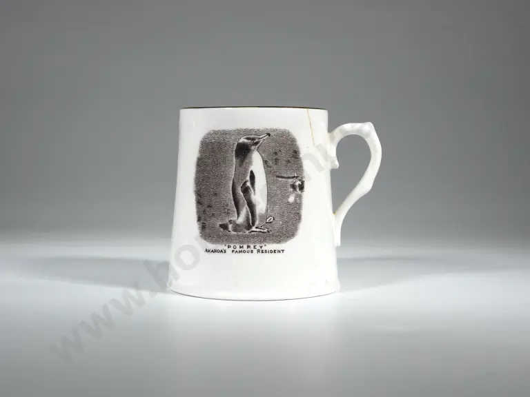 A Souvenir Mug "Pompey, Akaroa's Famous Penguin (a/.f) Estimate: $40 - $60